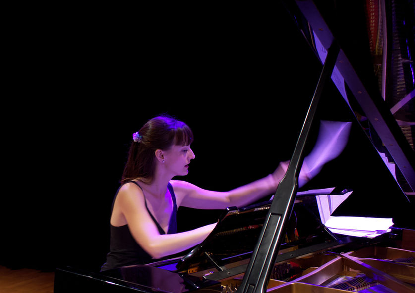 Improvisation and extended piano techniques are constant components of her artistic expression.